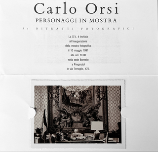 Dal 10 al 31 maggio 1991, lo Spazio Bornello di Preganziol ospita la mostra Carlo Orsi. Personaggi in mostra. 31 ritratti fotografici. L'esposizione presenta una serie di ritratti che riflettono l’abilità del fotografo nel catturare espressioni e caratteri particolari dei propri soggetti in modo sincero e diretto, mantenendo il suo stile distintivo e attento ai dettagli.. La mostra è significativa, inoltre, per l’approfondimento culturale che offre attraverso l'utilizzo del medium fotografico, mostrando la capacità di Orsi di documentare e celebrare figure di rilievo sottolineandone le emozioni umane