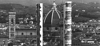 Ora le fotografie di Carlo Orsi "fissano" per sempre non solo l'estensione dell’"allestimento", ma anche la "verticalità" vertiginosa o brancusiana di opere come Triad, monumentali colonne quasi a ridosso della città, Movimento di crollo e Colonna recisa trasversalmente, con il loro effetto-movimento manierista, fino alla Sfera nel cielo che pare una navicella spaziale.